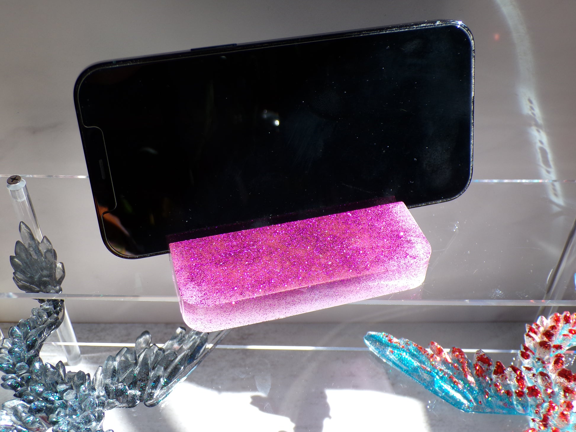 Phone Stand Rectangle Purple Glitter